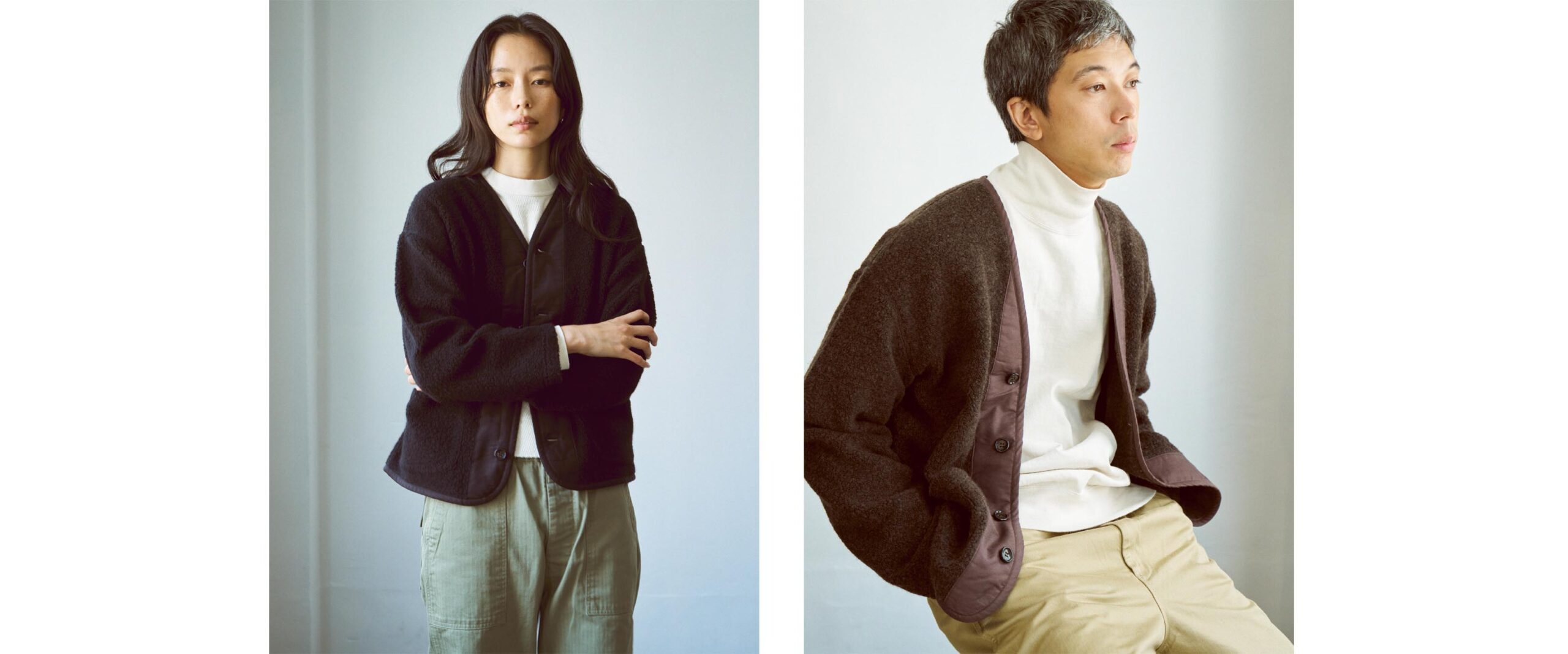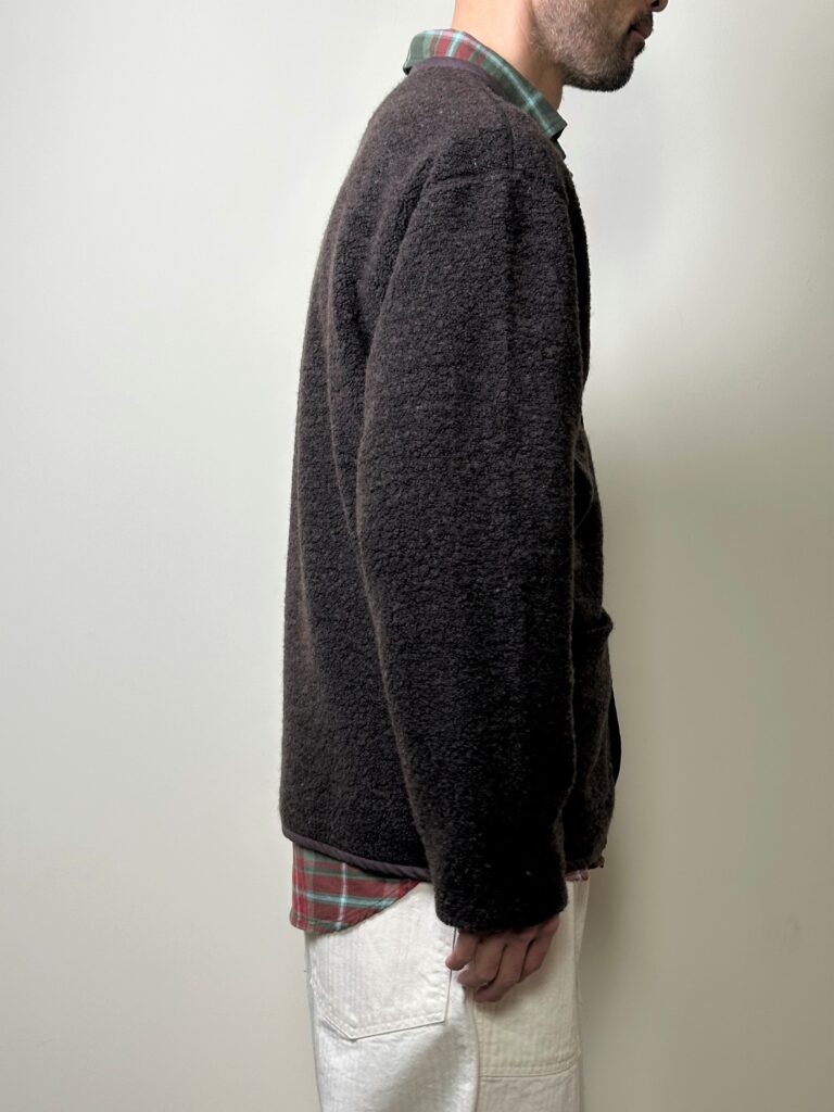 ウールの産地・尾州でニッティングされたパイル生地を使用したカーディガン。