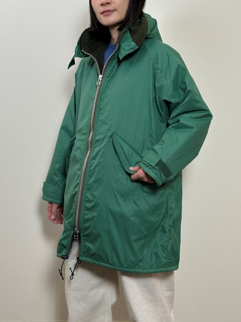 薄手で柔らかいナイロン100%の生地を表地に使用し、内側にはボアをあてて保温性を高めた仕様です。