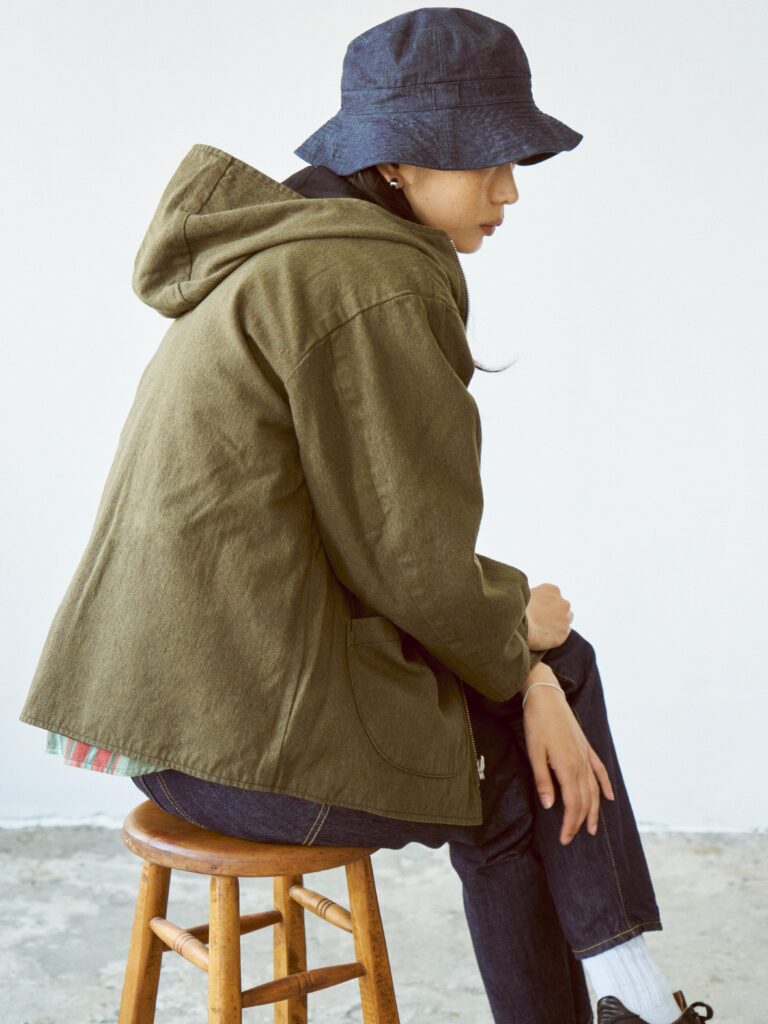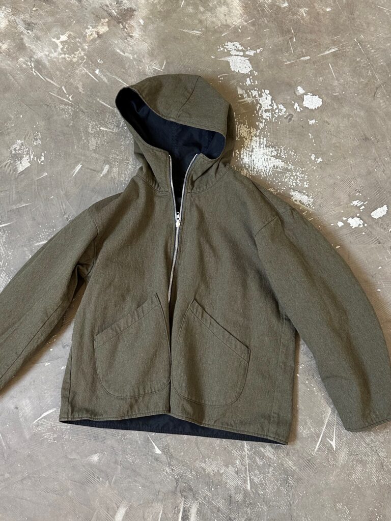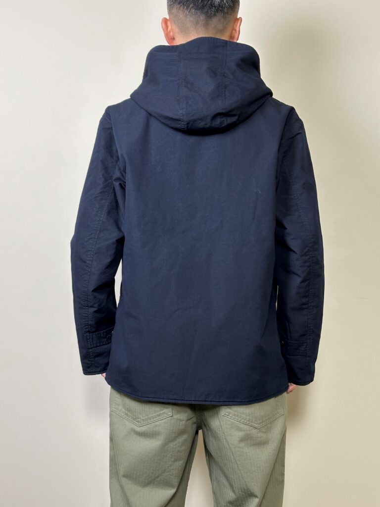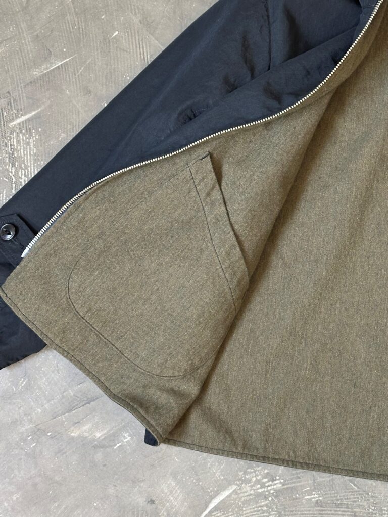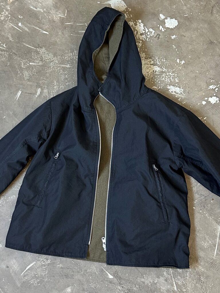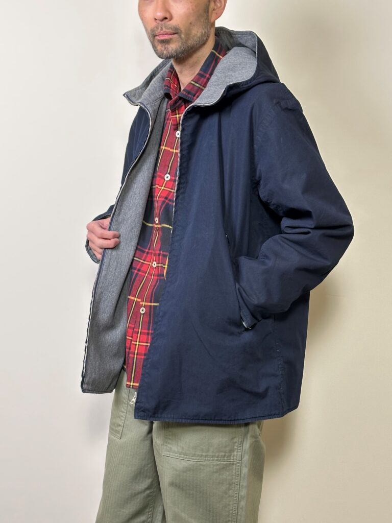 NCインディゴクロスとウール生地を組み合わたリバーシブル仕様のフード付きジャケットです。